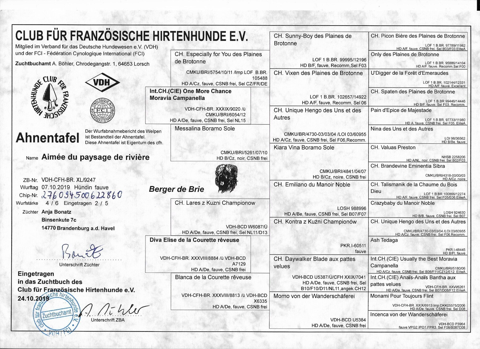 Aimée du paysage de rivière(Int. CH. (CIE) One More Chance Moravia Campanella x Diva Elise de la Courette rêveuse)Wurfdatum: 07.10.2019HD-A - CSNB frei - EU ohne Befund